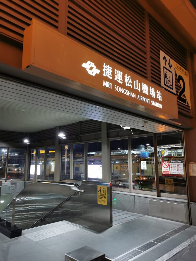空港の MRT の入り口。台北は雨模様。