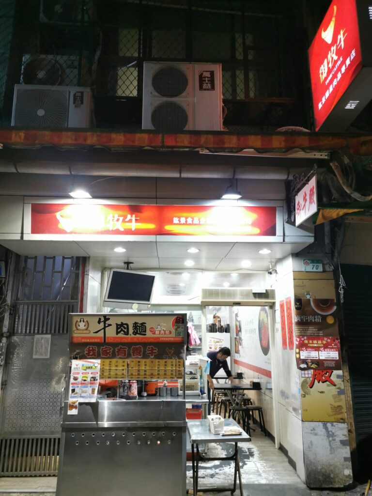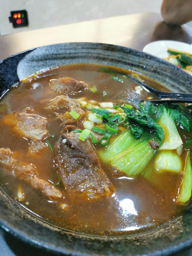 牛肉がゴロンゴロンと入った牛肉麺。台湾に来たらやっぱりこれは1回は食べないと!この店は肉屋が経営してるようで 店の中には大きな冷蔵庫があっていっぱい肉が売られていました。