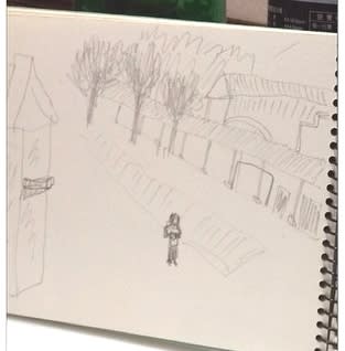 最近夫が急にスケッチをはじめまして、一日一スケッチ描いてます。そんなわけでこの旅行にもスケッチブックを持って行って、いろいろ描いていました。もともとわたしの趣味だったんですけどね。